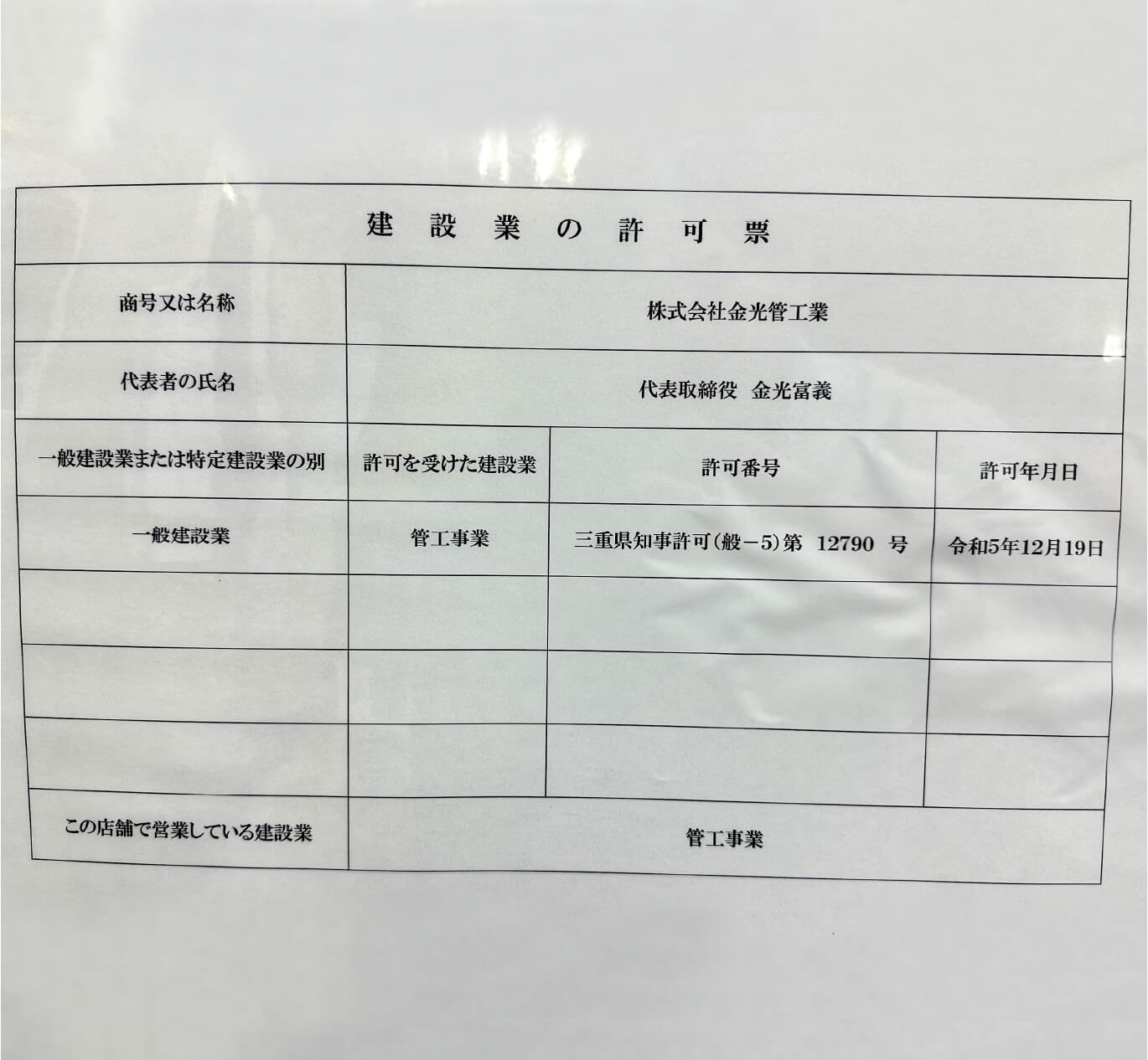 | 許可 | 三重県知事許可(般-5)第12790号 |